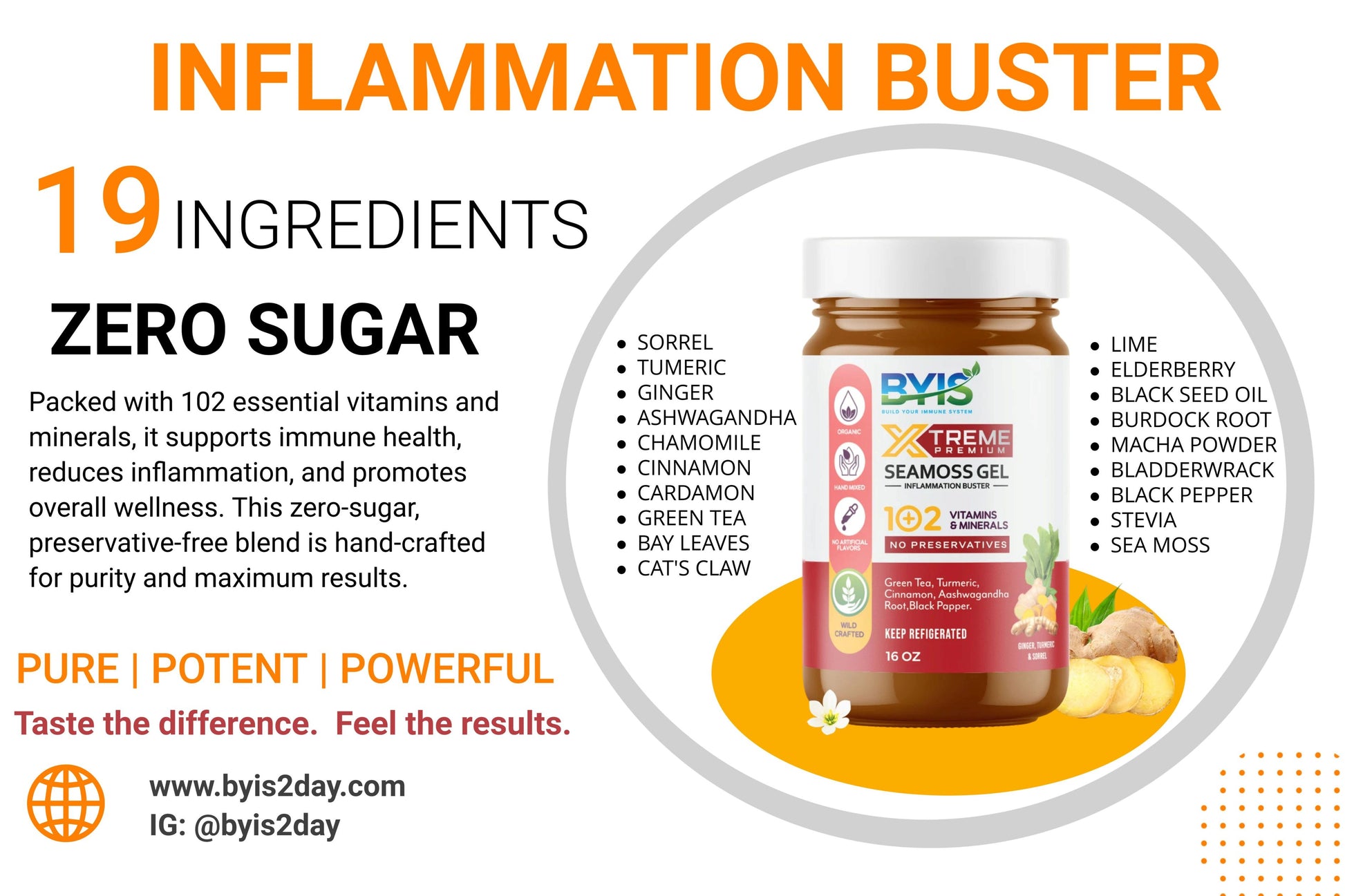 Discover the power of nature in every spoonful with our BYIS Infl. Buster Soothe & Restore Sea Moss Gel. This carefully crafted formula blends 19 natural, premium ingredients to support your body’s natural defenses, promote a healthy relief response, and deliver a wealth of nutrients that help you thrive daily.